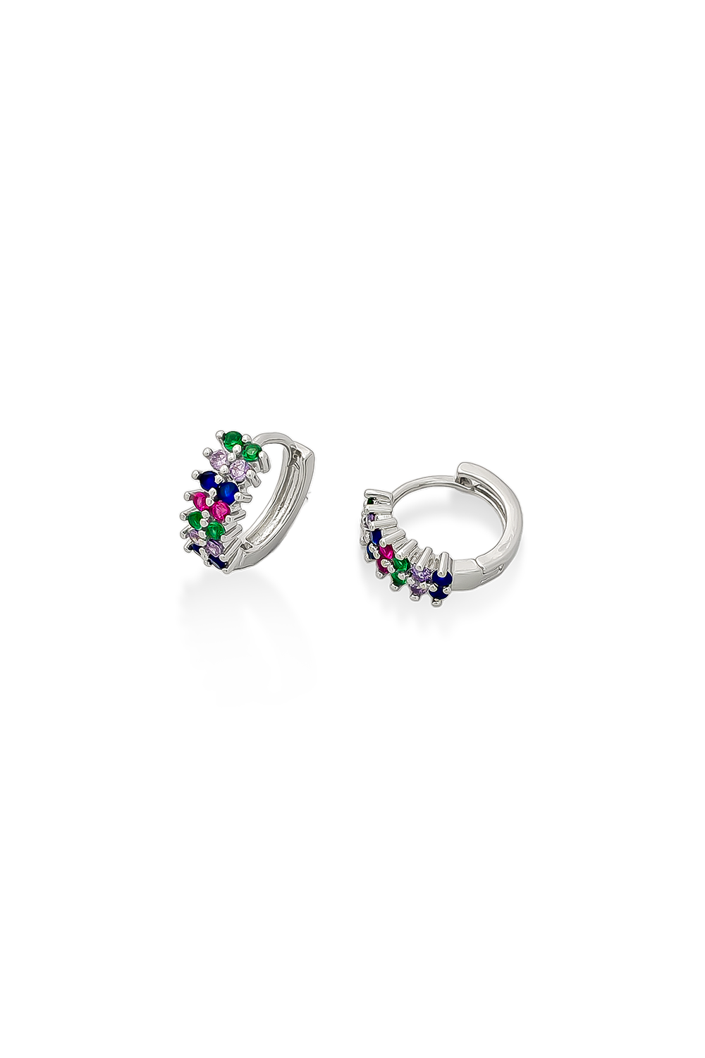 CANDONGAS BAÑADAS EN PLATA CON DOS LÍNEAS DE MICROCIRCONES DE COLORES Material: BAÑO DE PLATA