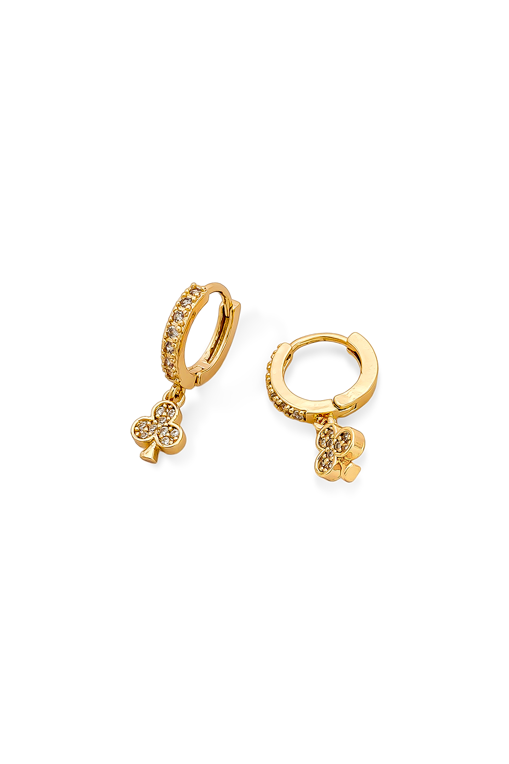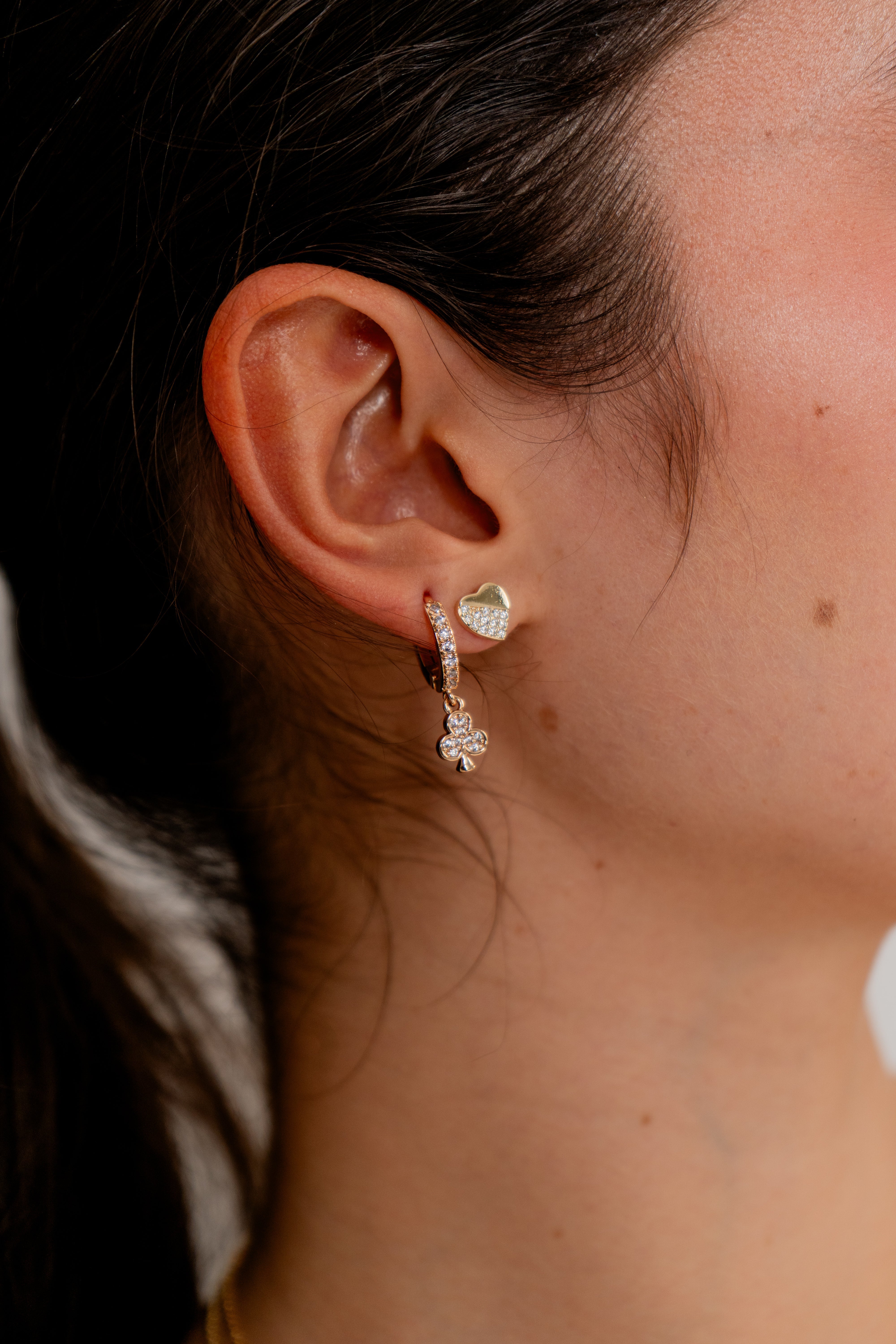 CANDONGAS BAÑADAS EN ORO CON MICROCIRCONES EN LA PARTE SUPERIOR, DIJE CON FORMA DE TREBOL Y MICROCIRCONES BLANCOS EN EL INTERIOR DEL DIJE
