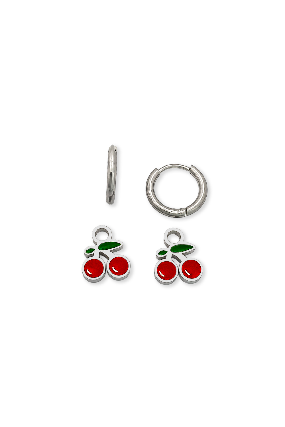 CANDONGAS DIJE REMOVIBLE EN ACERO INOXIDABLE CON UNA CAPA DE RESINA DE COLOR ROJO Y VERDE