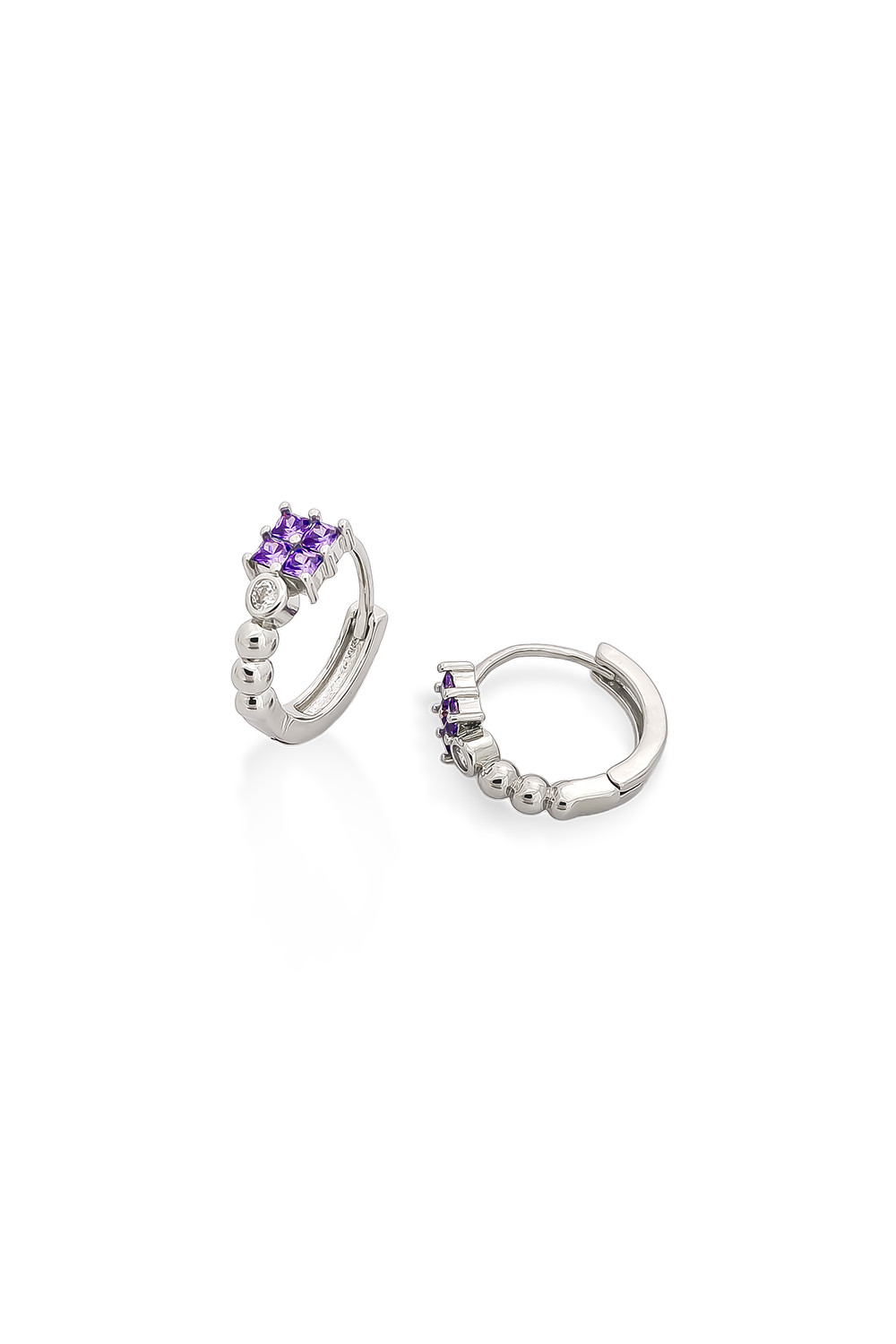 CANDONGAS MEDIANAS BAÑADAS EN PLATA CON CIRCON MORADO