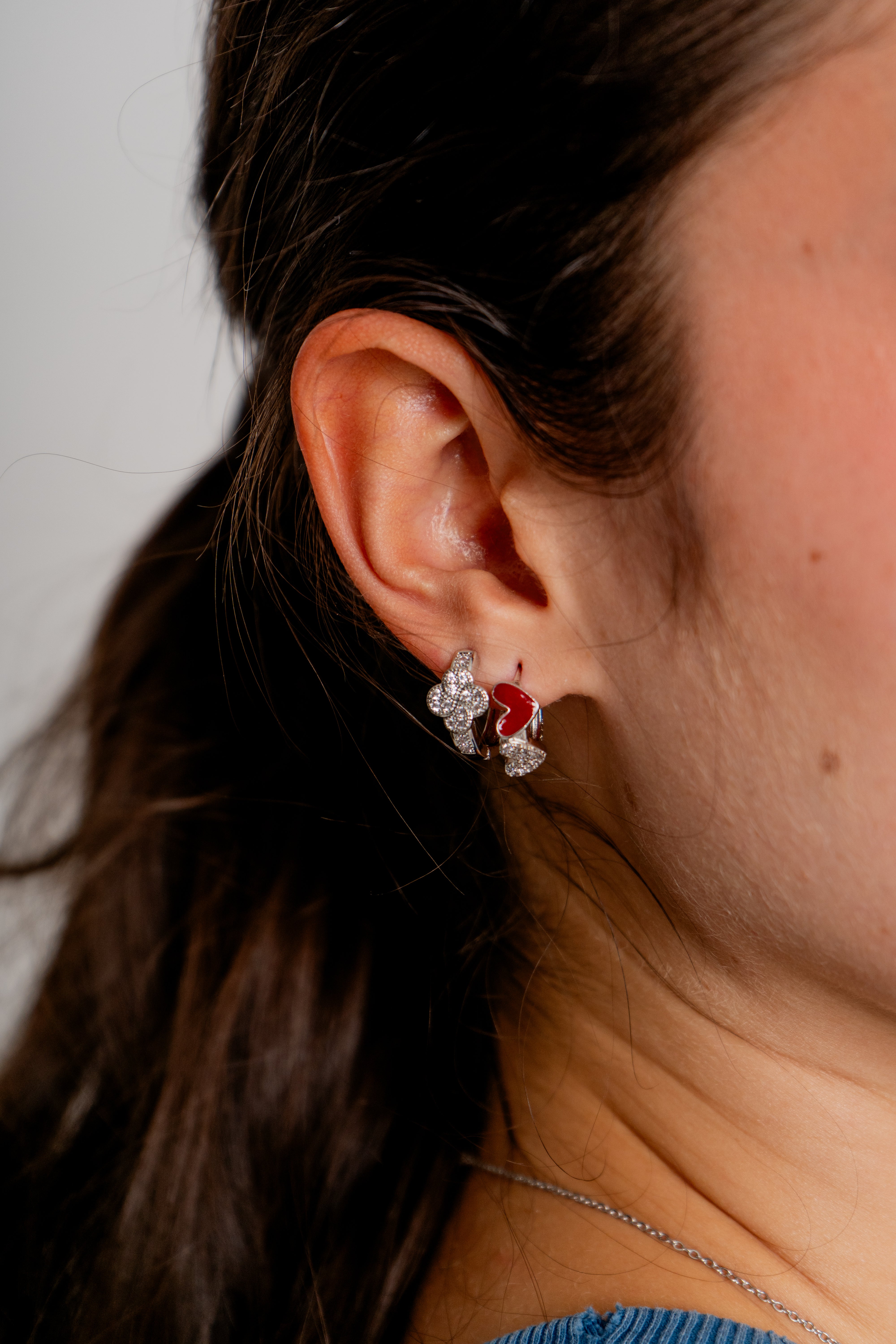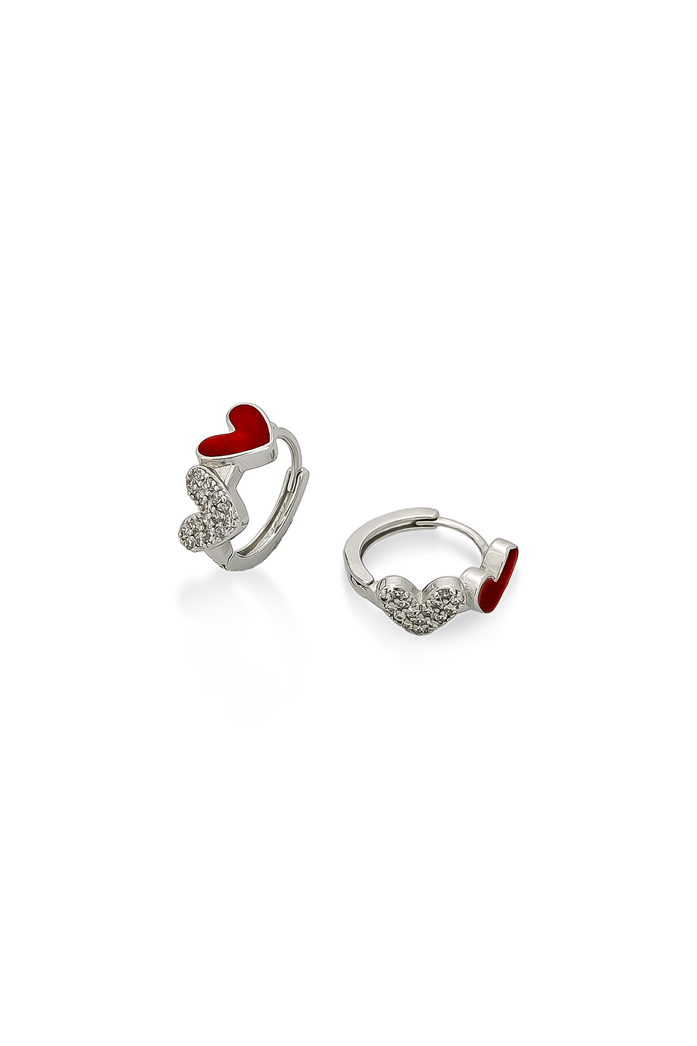 CANDONGAS BAÑADAS EN PLATA CON RESINA DE COLOR ROJO Y MICROCIRCONES BLANCOS