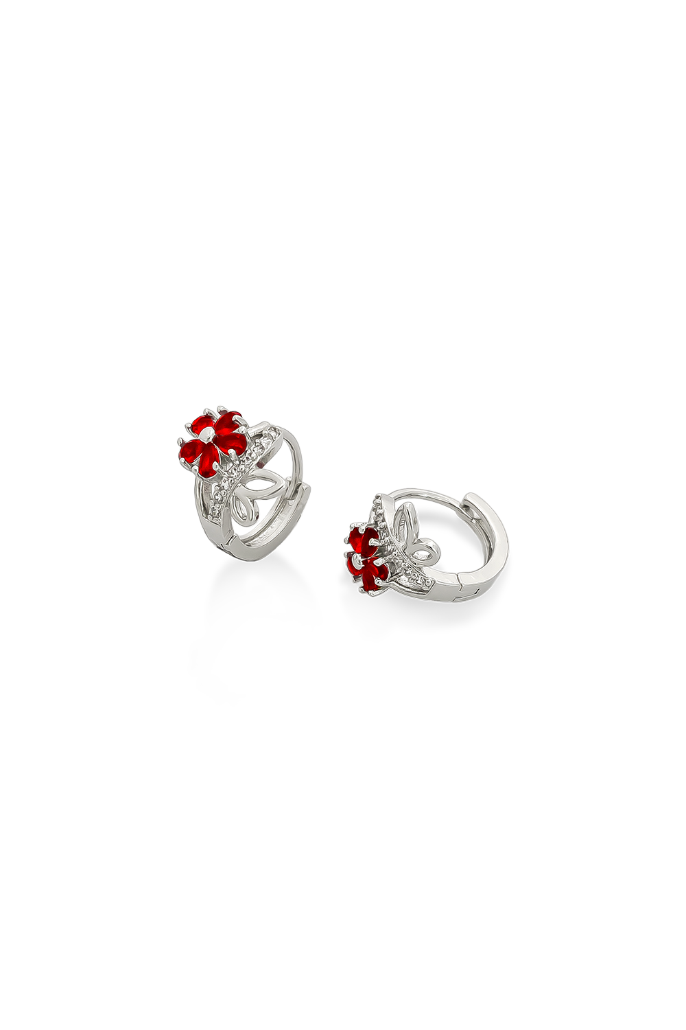 CANDONGAS BAÑADAS EN PLATA CON CIRCONES ROJOS