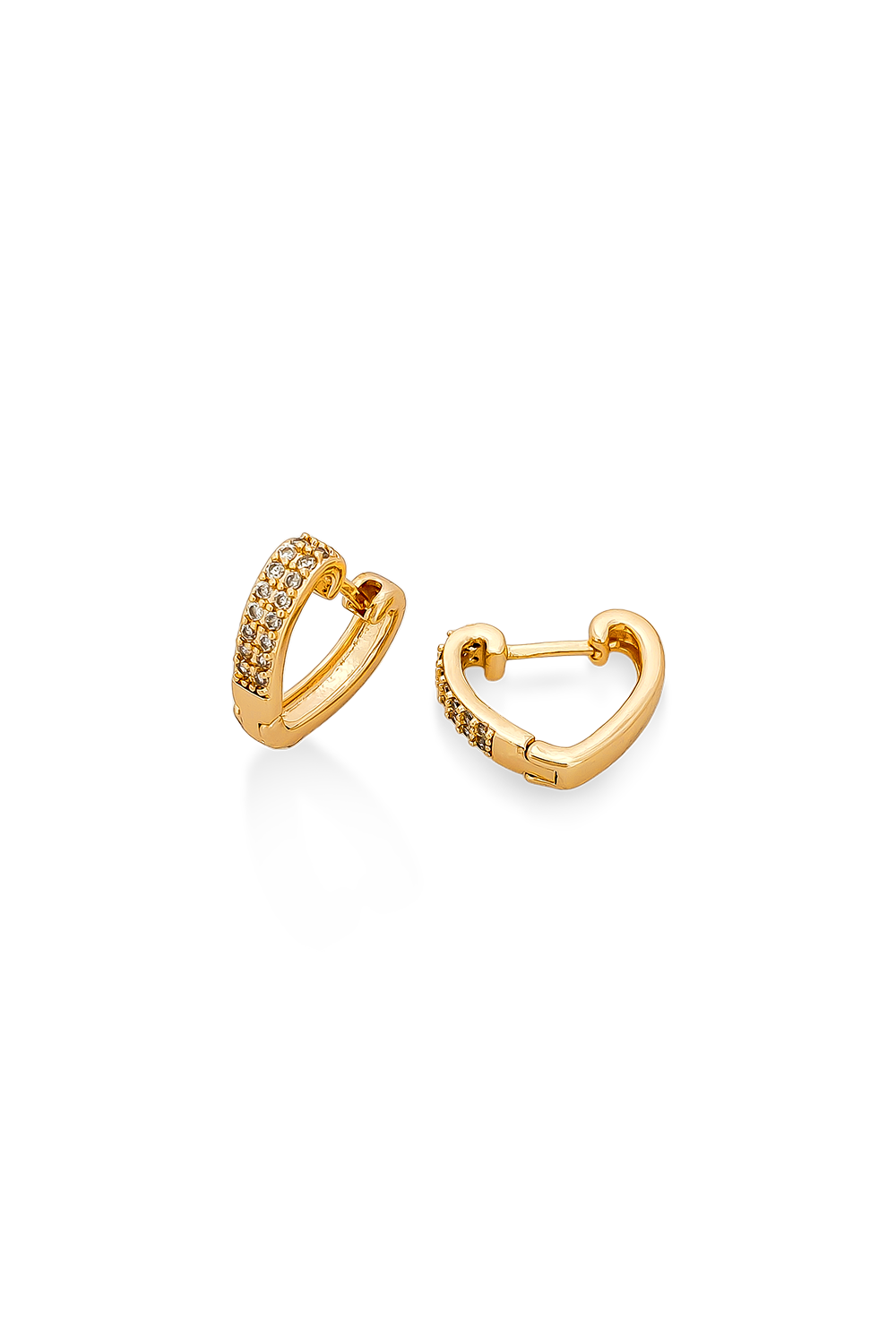 CANDONGAS BAÑADAS EN ORO EN FORMA DE CORAZÓN CON LÍNEA DE CIRCONES BLANCOS