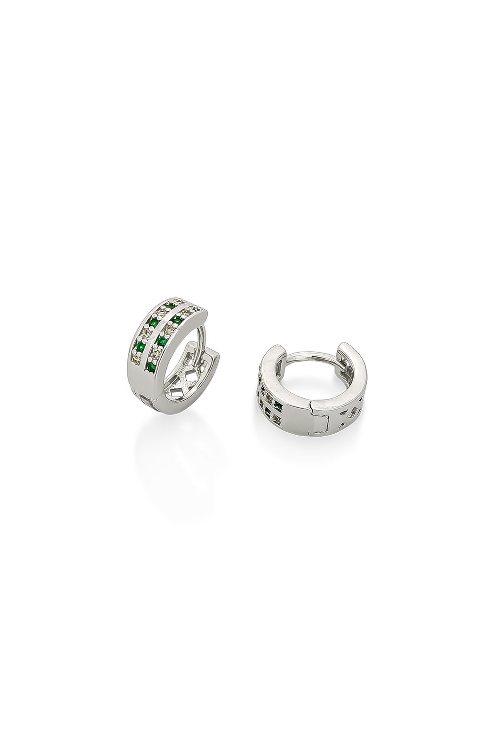CANDONGAS PEQUEÑAS BAÑADAS EN PLATA CON DOBLE LÍNEA DE MICROCIRCONES VERDE Y BLANCO