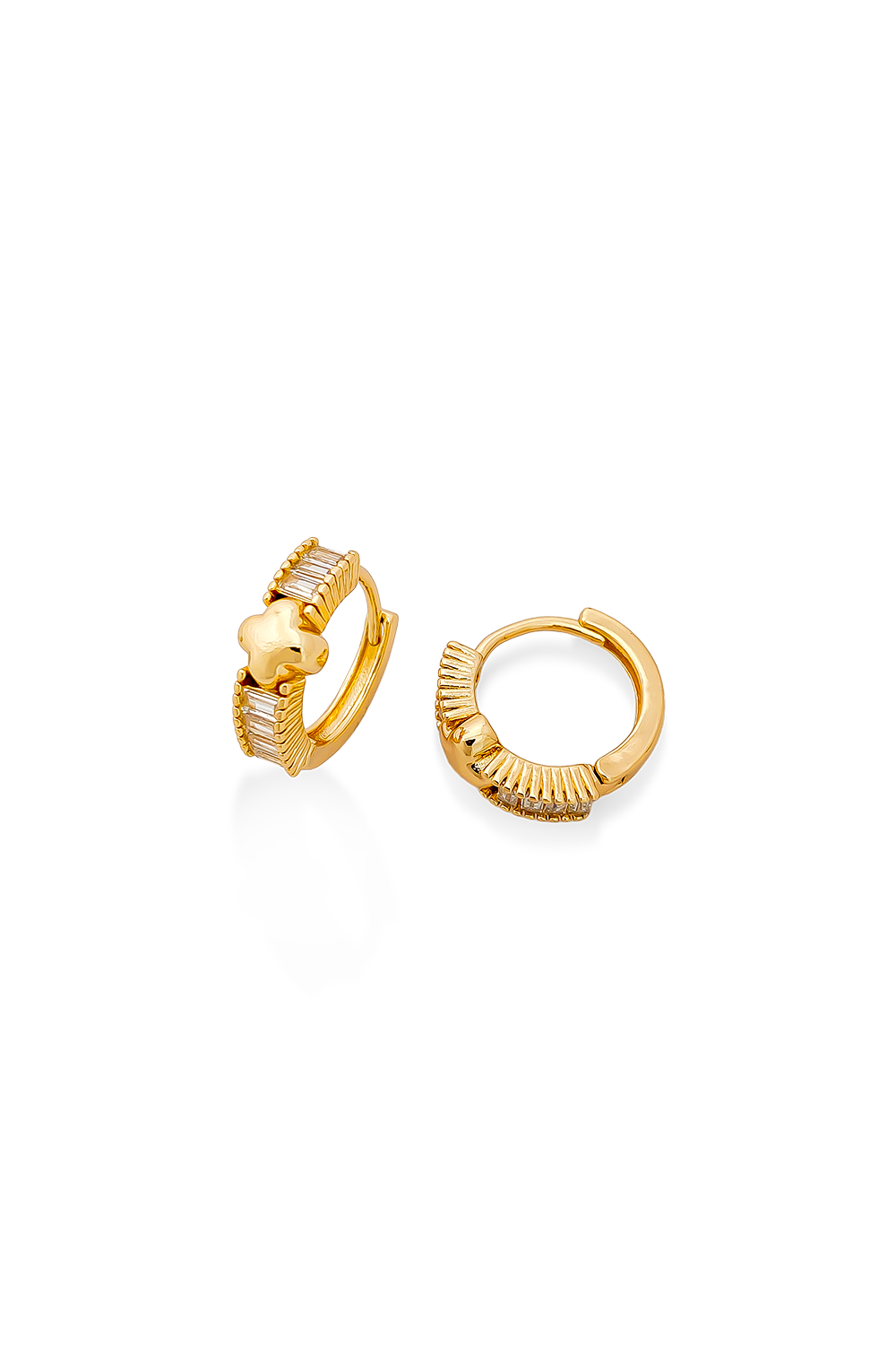 CANDONGAS BAÑADAS EN ORO CON TRÉBOL LISO EN EL MEDIO Y LÍNEA DE CIRCONES BLANCOS