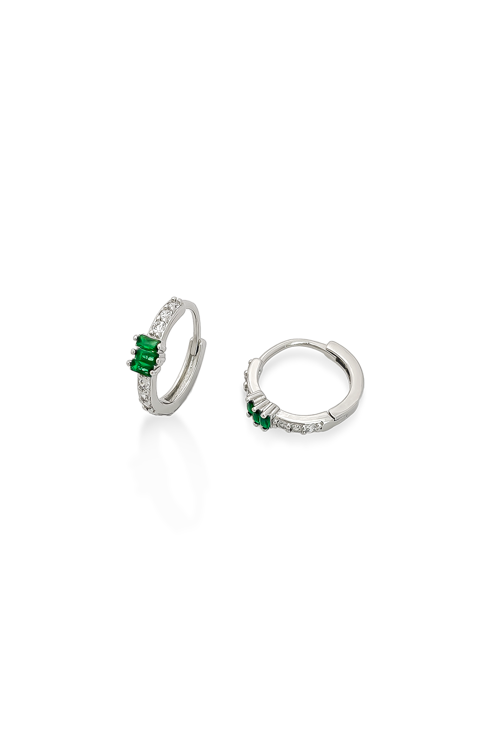 CANDONGAS BAÑADAS EN PLATA CON 3 CIRCONES VERDES Y MICROCIRCONES BLANCOS