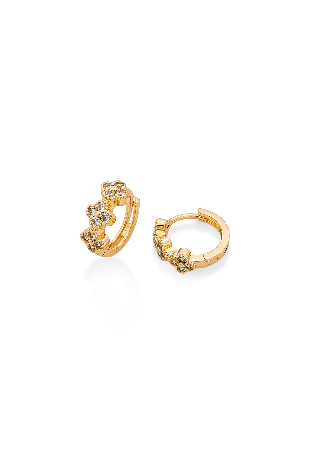 CANDONGAS PEQUEÑAS BAÑADAS EN ORO CON LÍNEA DE TRES TREBOLESY CON CIRCONES BLANCOS