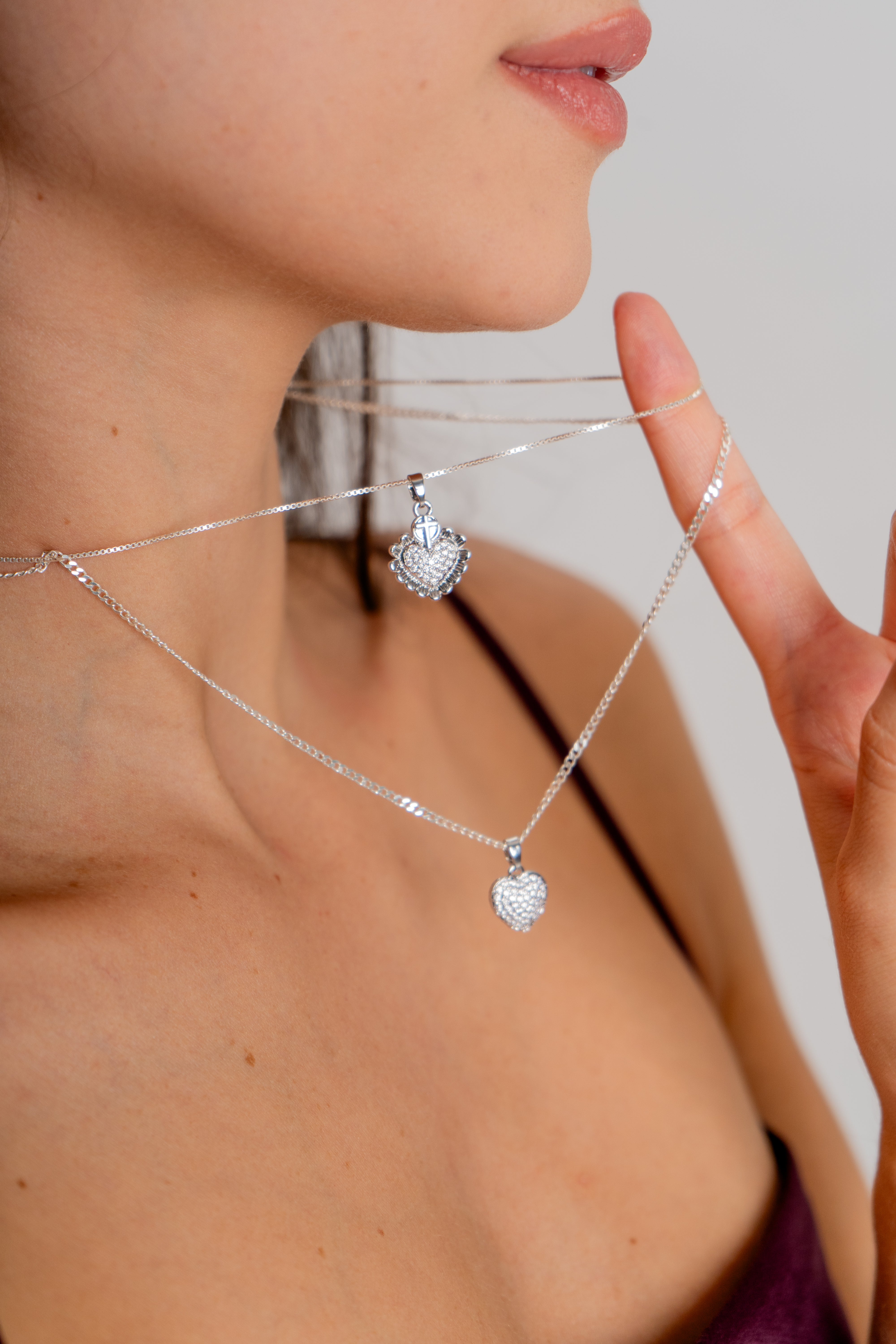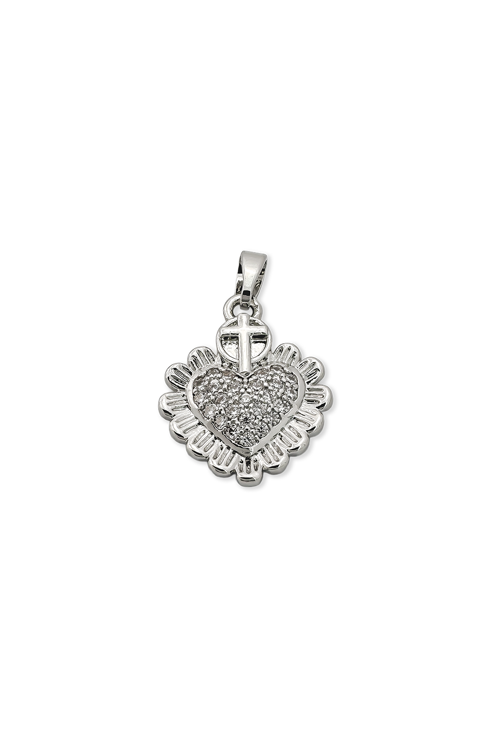 DIJE CON BAÑO EN PLATA EN FORMA DE CORAZÓN DE JESÚS CON MICROCIRCONES BLANCOS