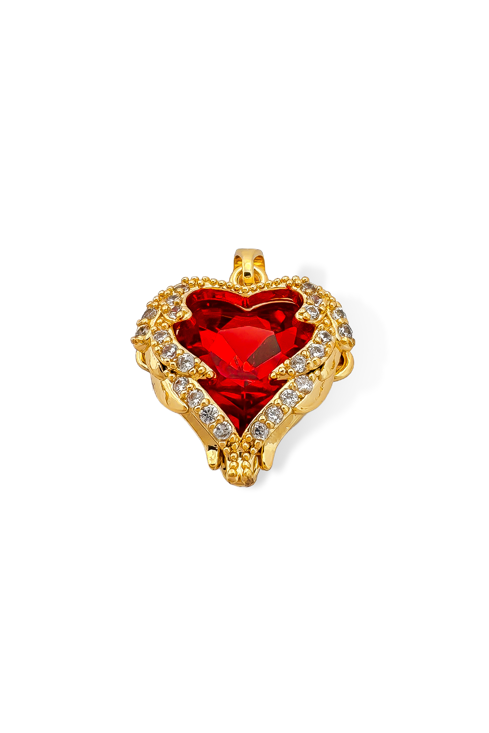 DIJE BAÑADO EN ORO EN FORMA DE CORAZON MARCO RODINADO Y MICROCIRCONES BLANCOS