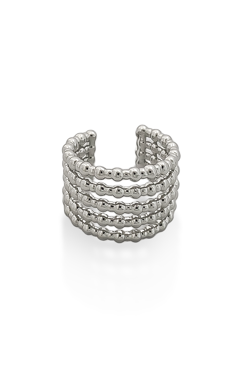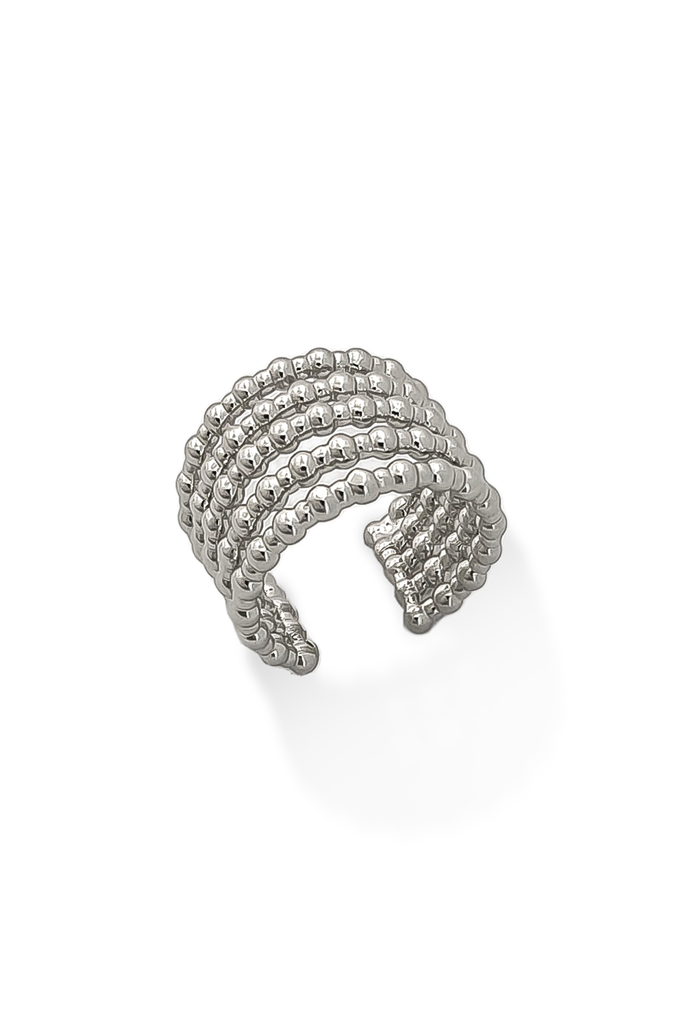 EARCUFF EN BAÑO DE PLATA CON CINCO LÍNEAS DE BALINES