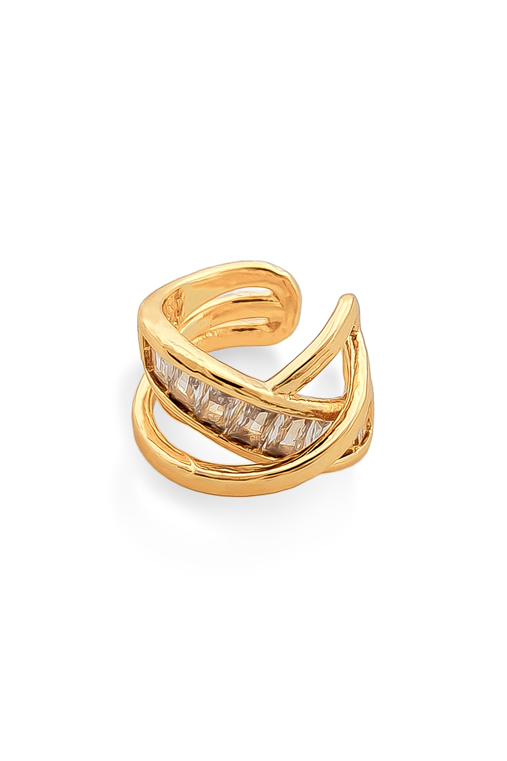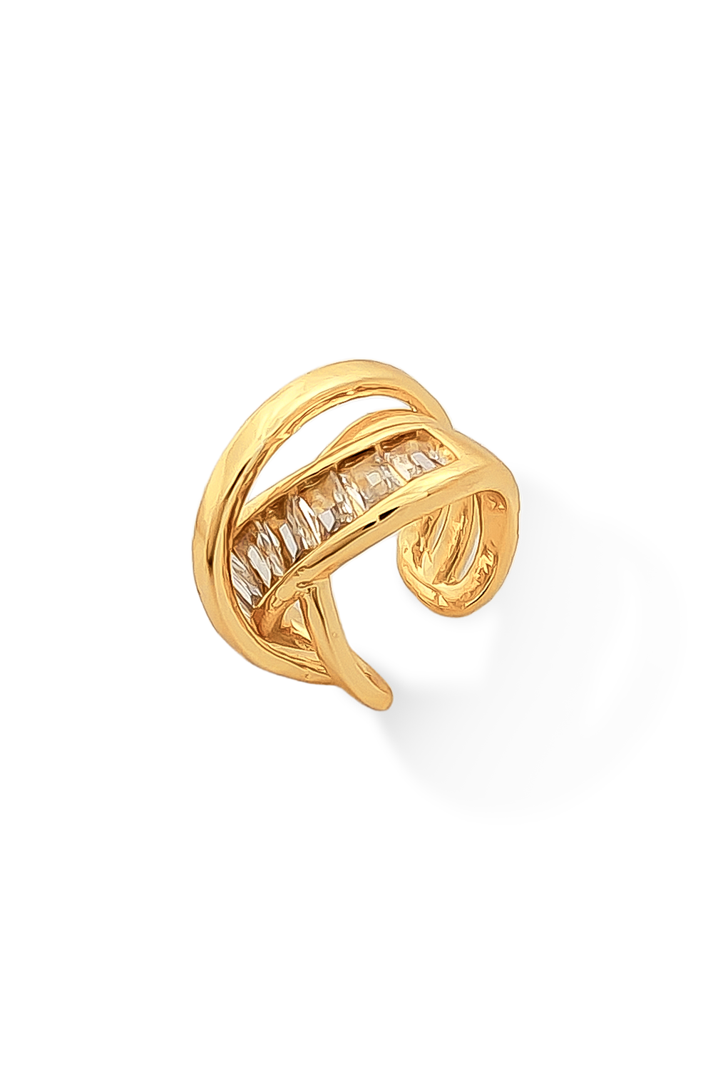 EARCUFF BAÑADO EN ORO ENTRELAZADO CON LÍNEA DE CIRCONES RECTANGULARES