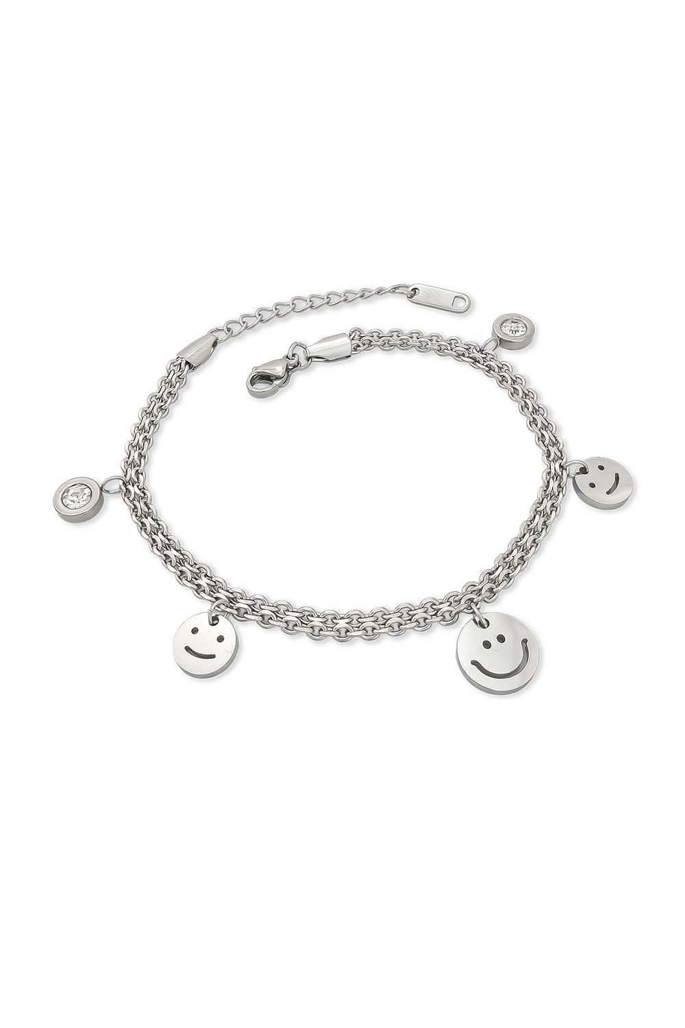 PULSERA EN ACERO INOXIDABLE CON DIJES DE CARITAS FELICES Y CIRCONES