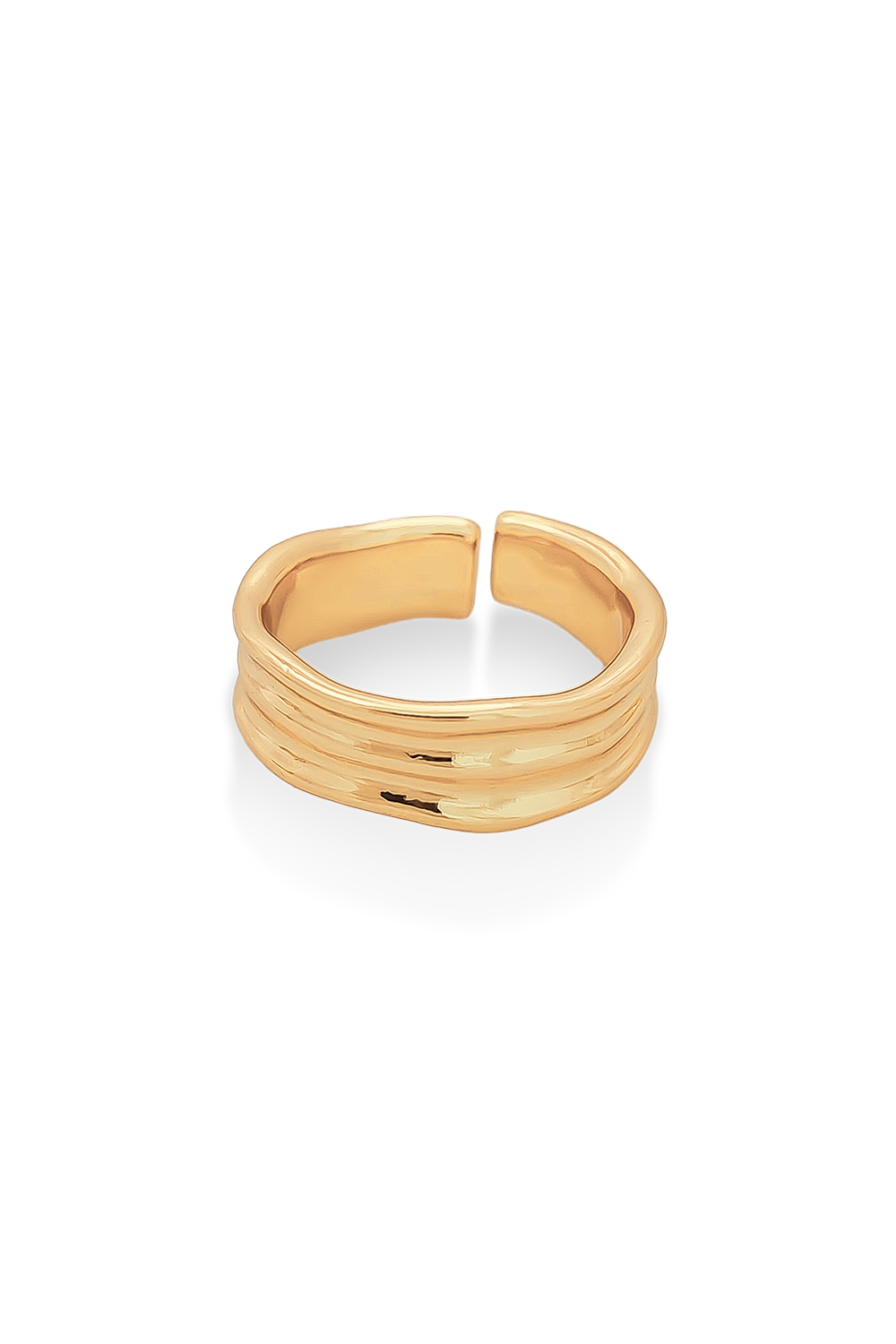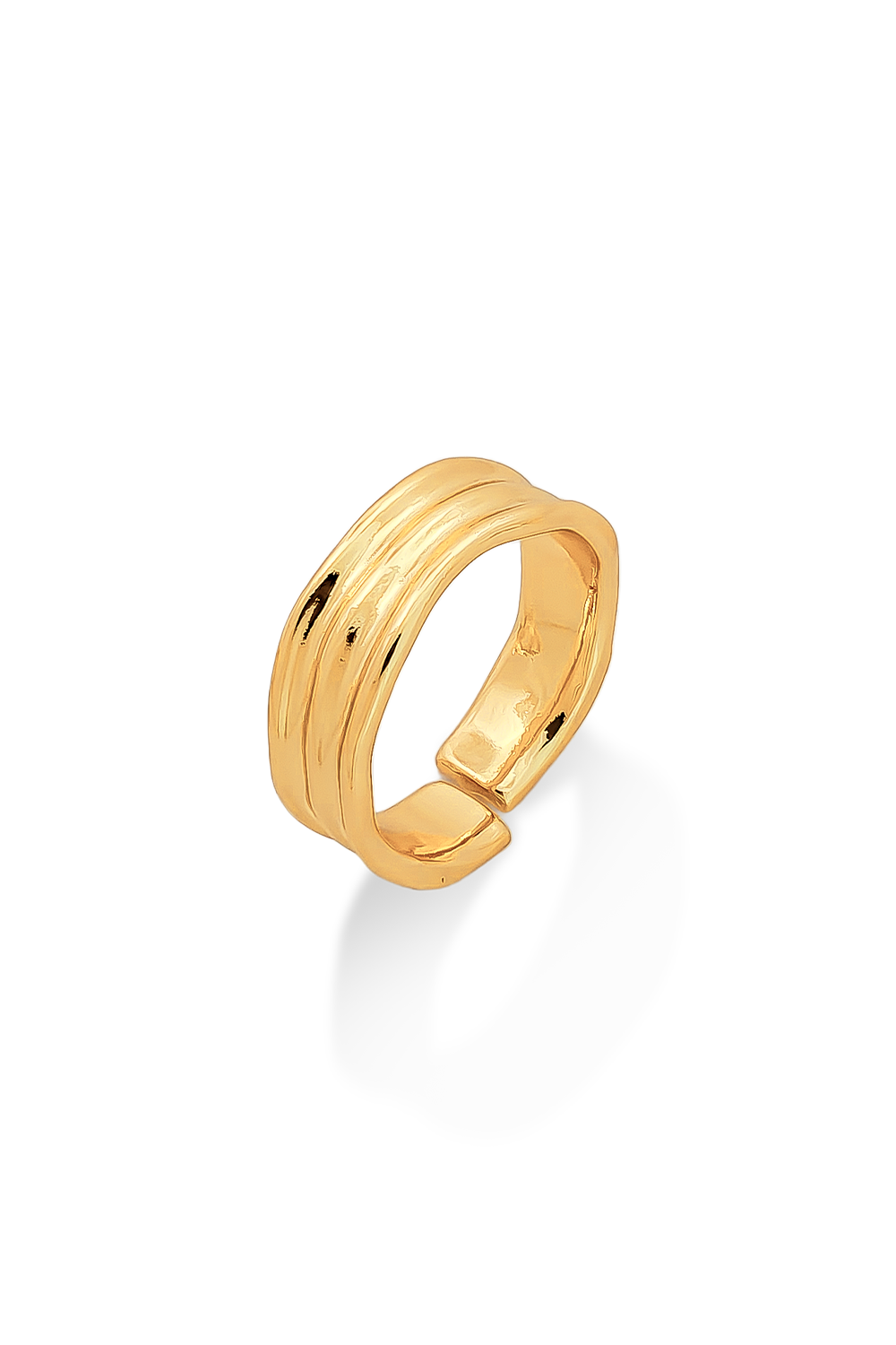 ANILLO AJUSTABLE BAÑADO EN ORO CON TRES LÍNEAS ESTILO CHUNKY