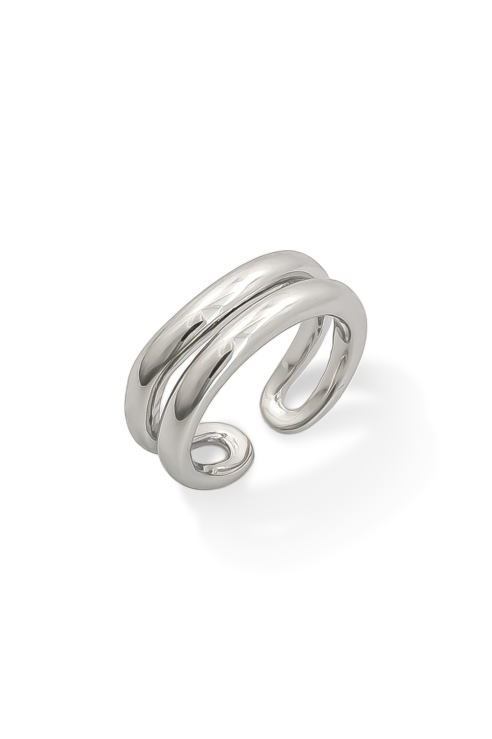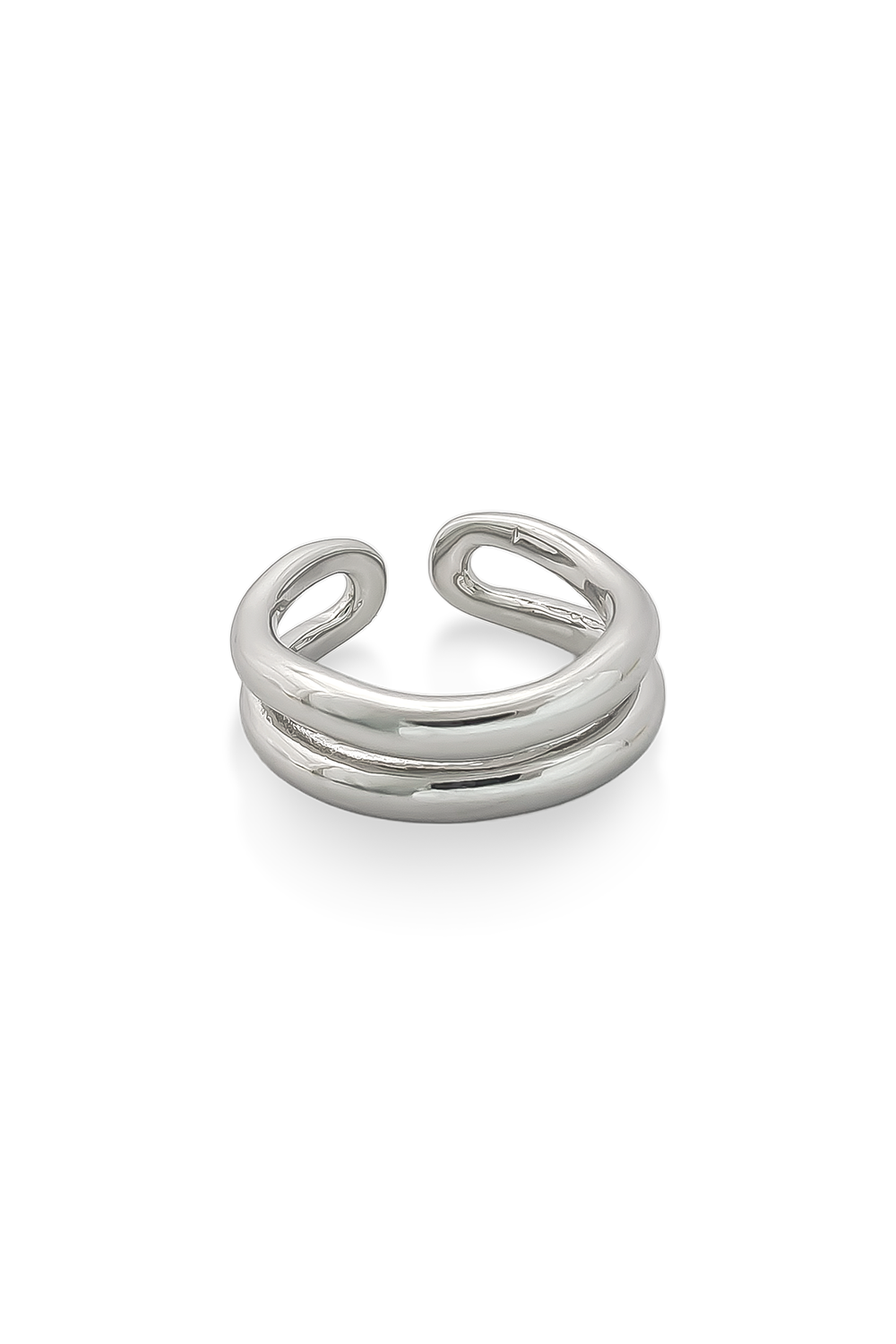 ANILLO AJUSTABLE CON BAÑO EN PLATA DOBLE LÍNEA TEXTURA LISA
