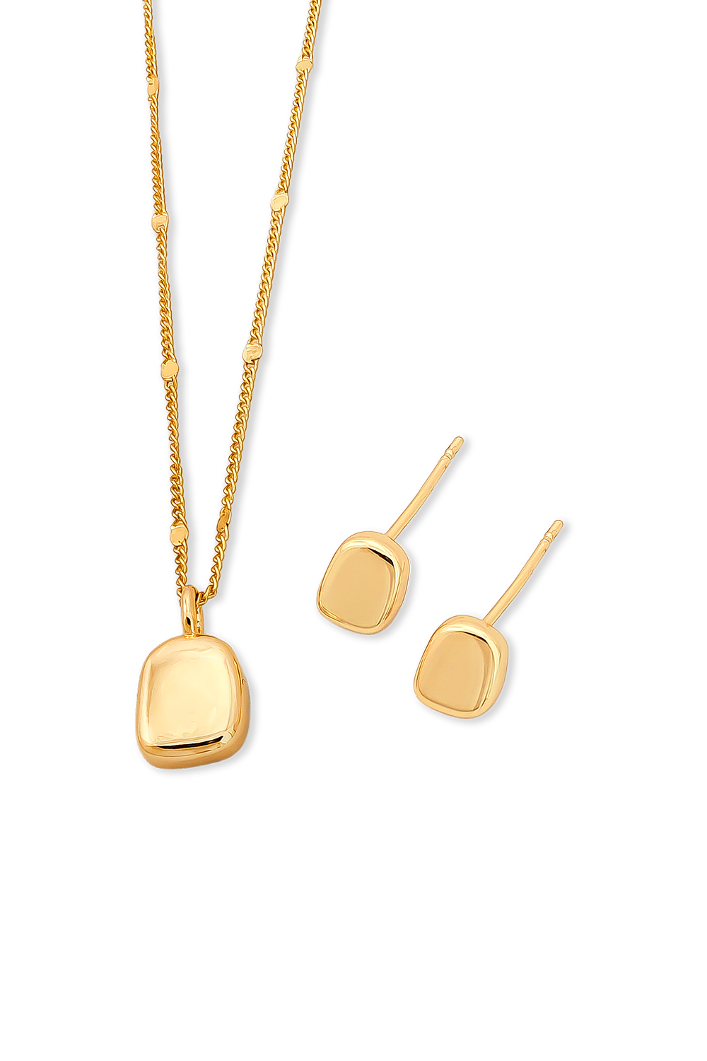 JUEGO BAÑADO EN ORO CON TOPOS Y DIJE EN FIGURA CON CADENA