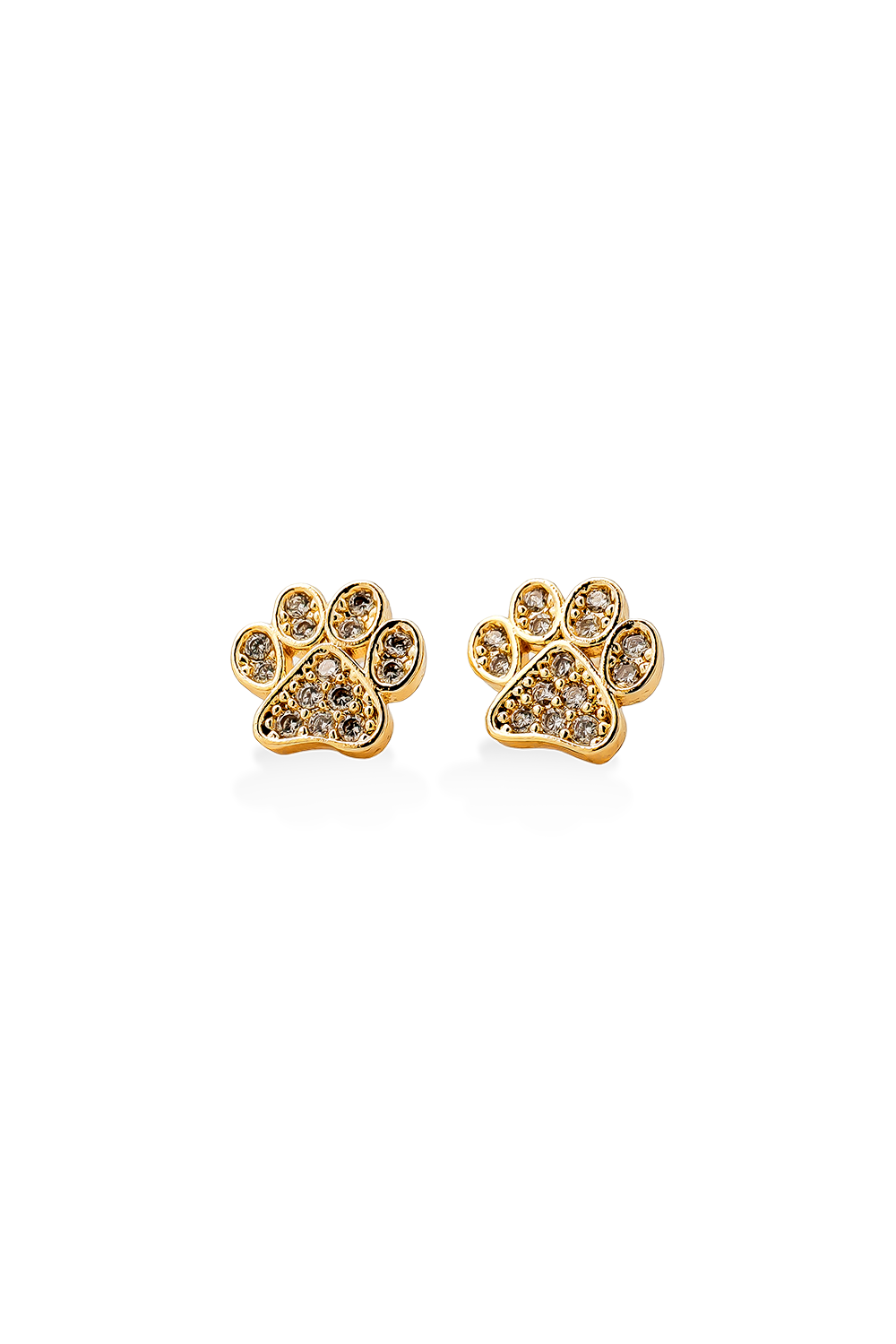 TOPOS BAÑADOS EN ORO EN FORMA DE HUELLA CON MICROCIRCONES BLANCOS