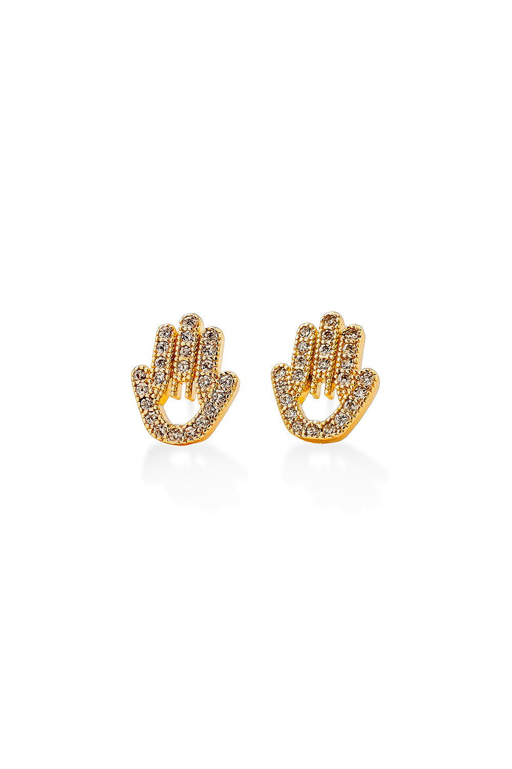 TOPOS BAÑADOS EN ORO EN FORMA DE MANO HAMSA CON BORDE DE CIRCONES BLANCOS